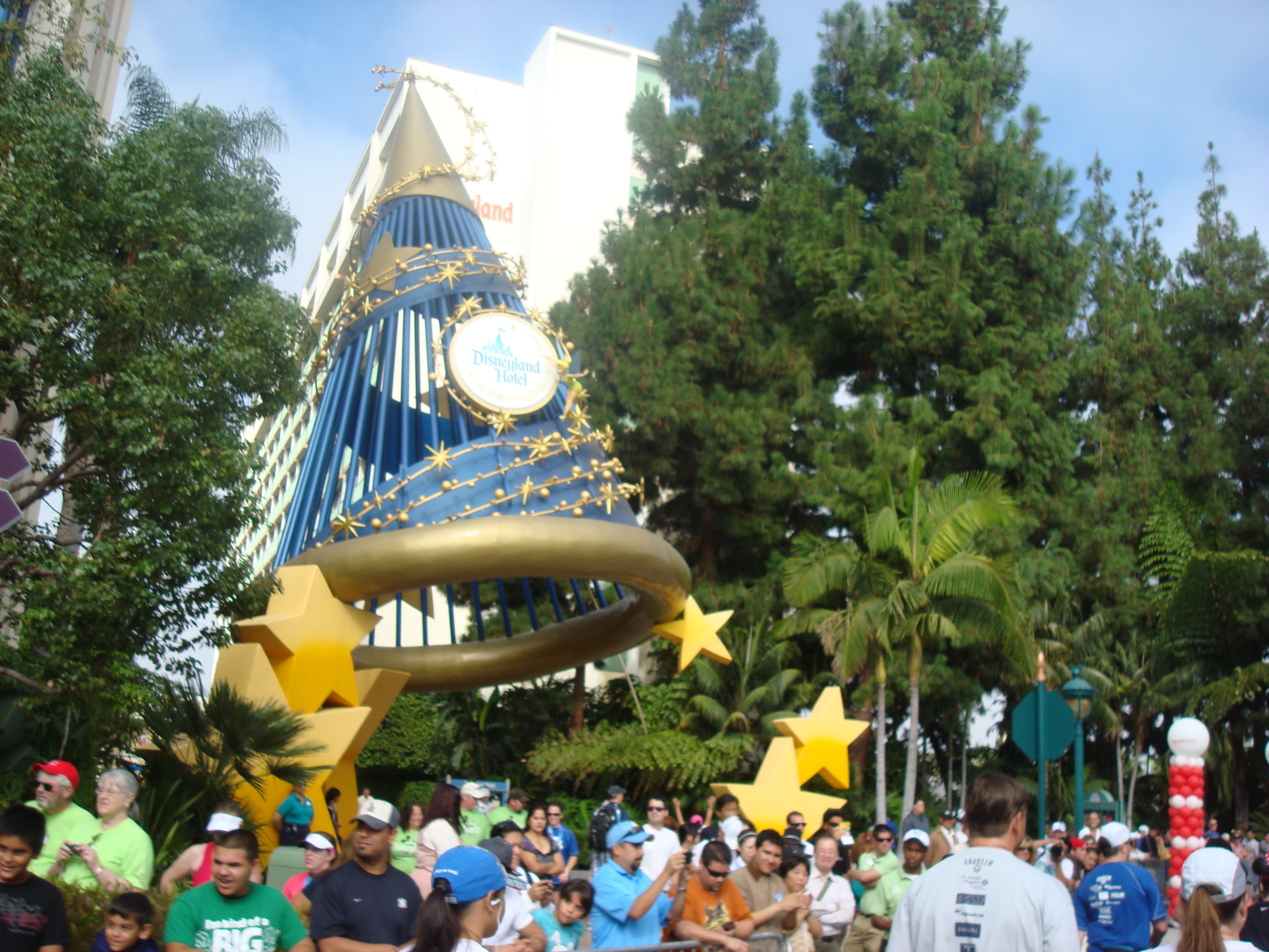 Lots of people watching the runners come towards the finish line which was near the Disneyland Hotel.