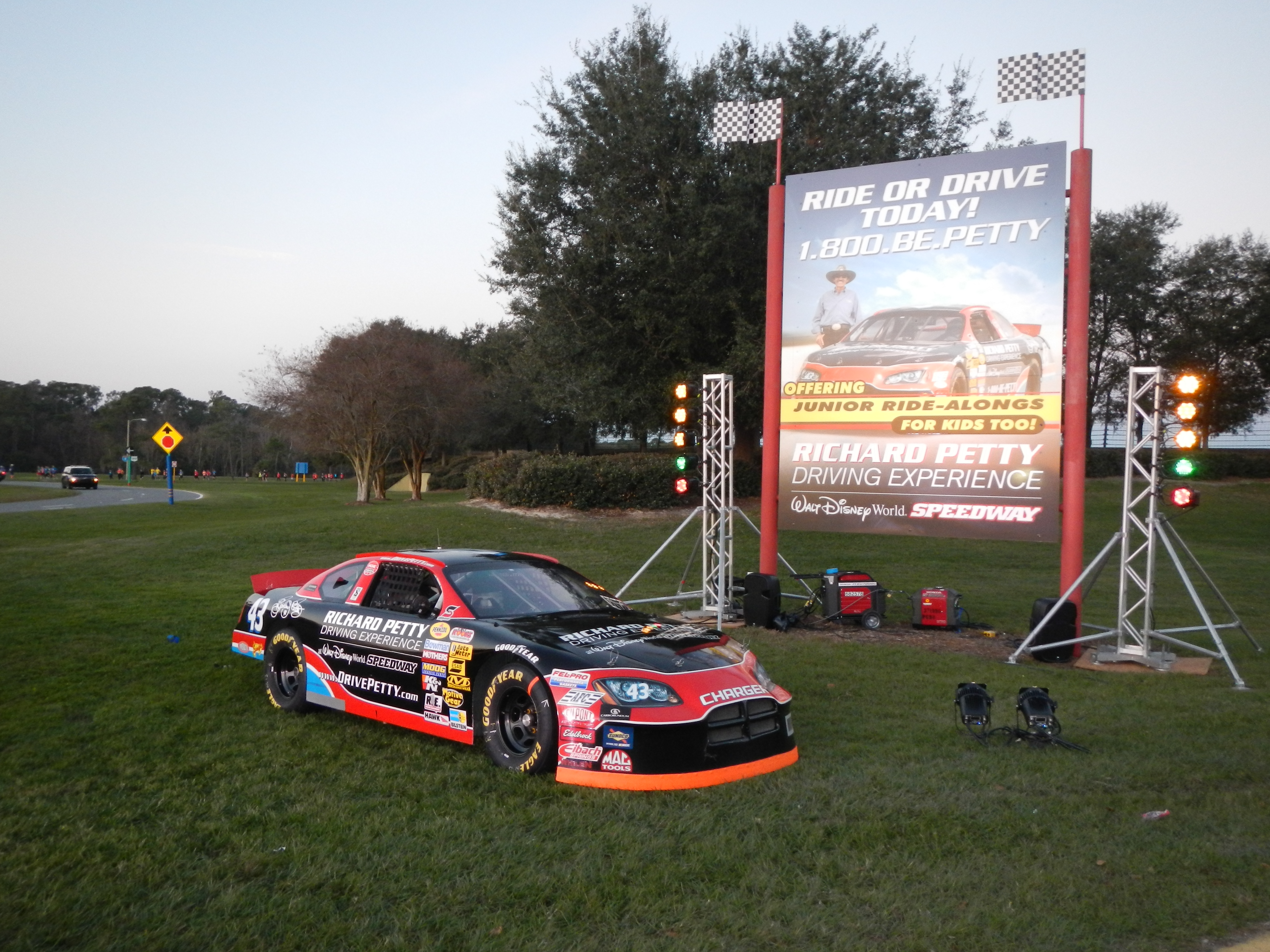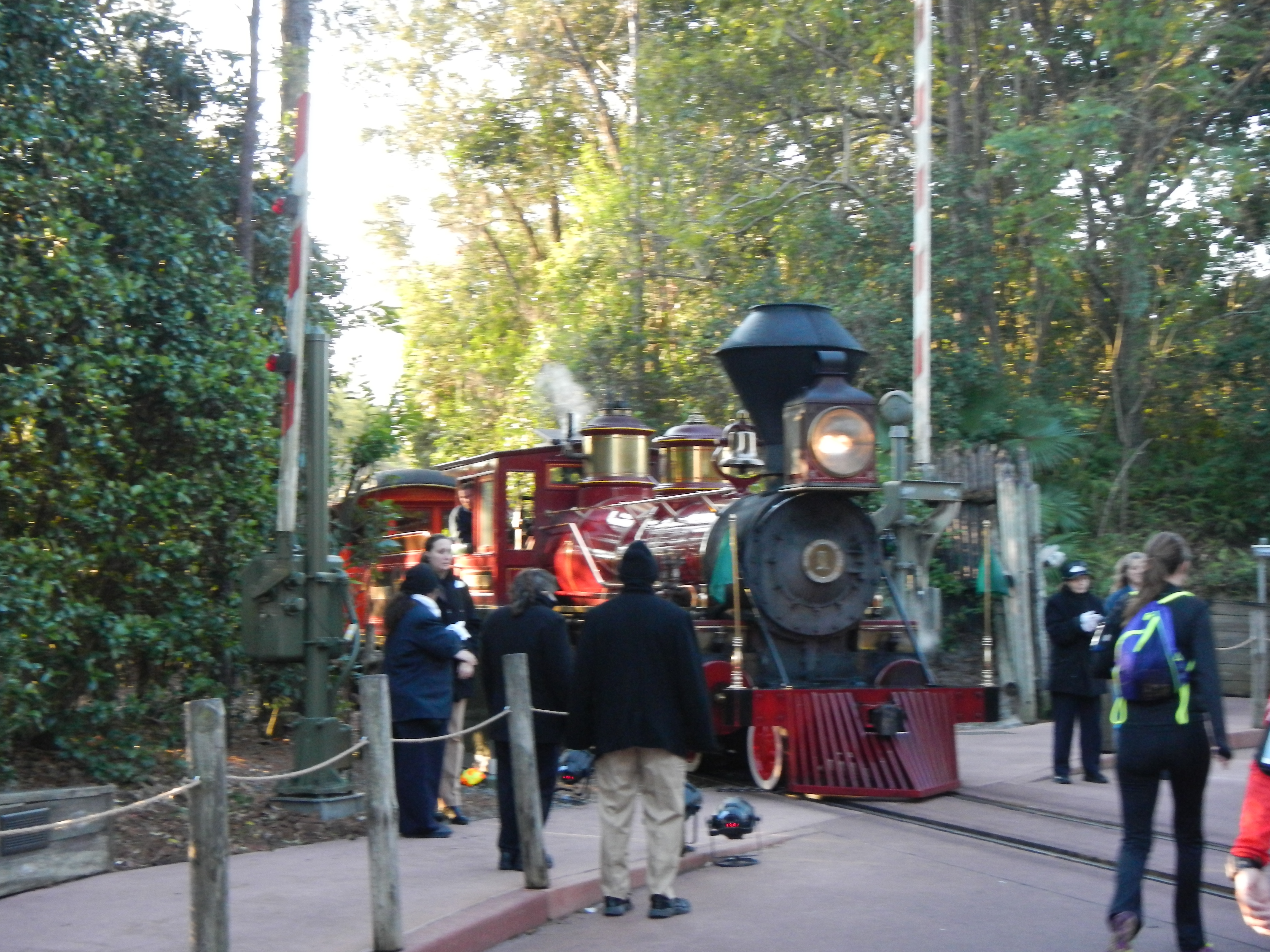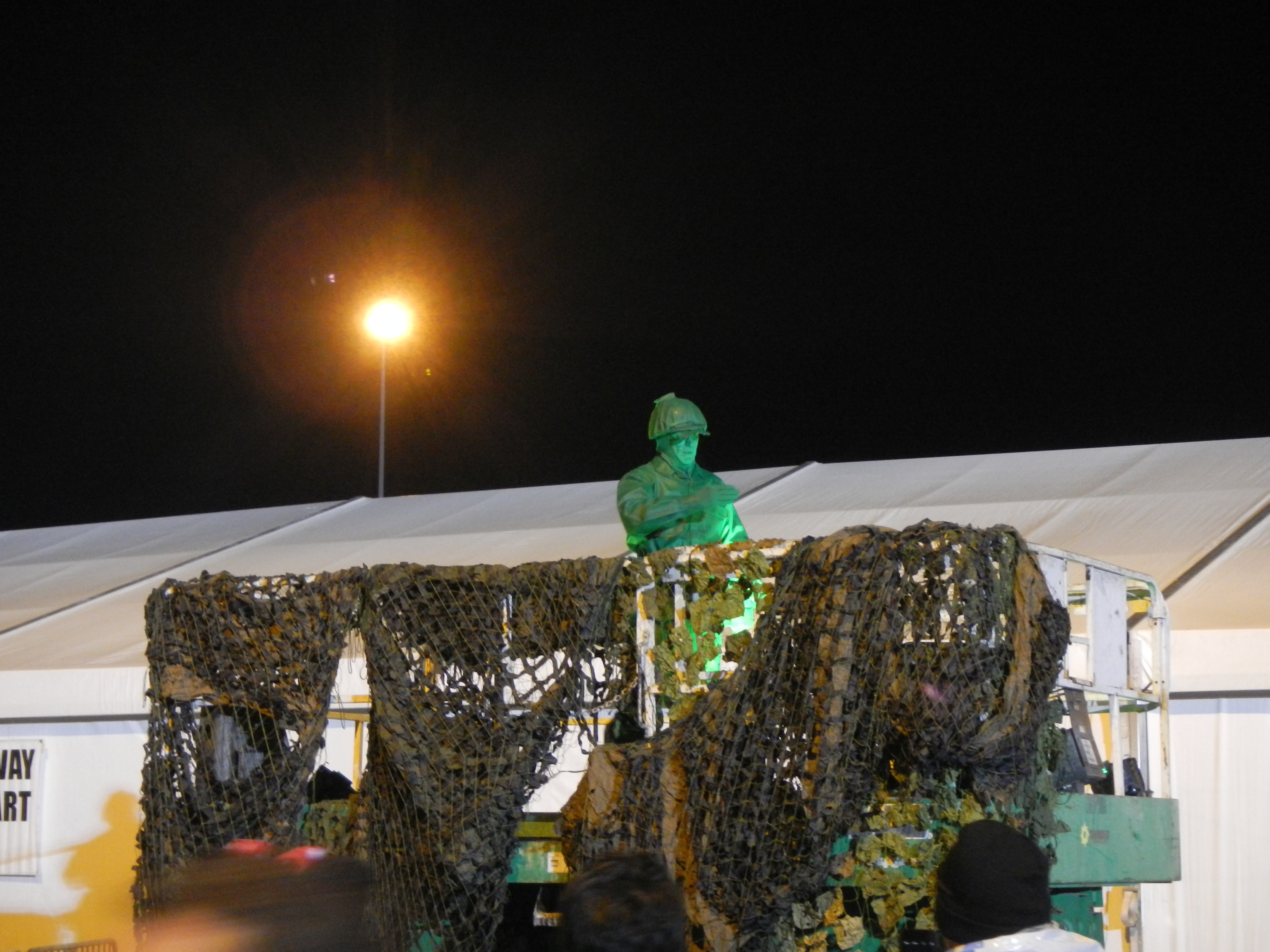 The Monorail passing overhead. It was transporting supports to and from various locations for the “Cheer Squad” as well as family members to different viewing sites. It honked and you could see people waving to us each time we passed one.