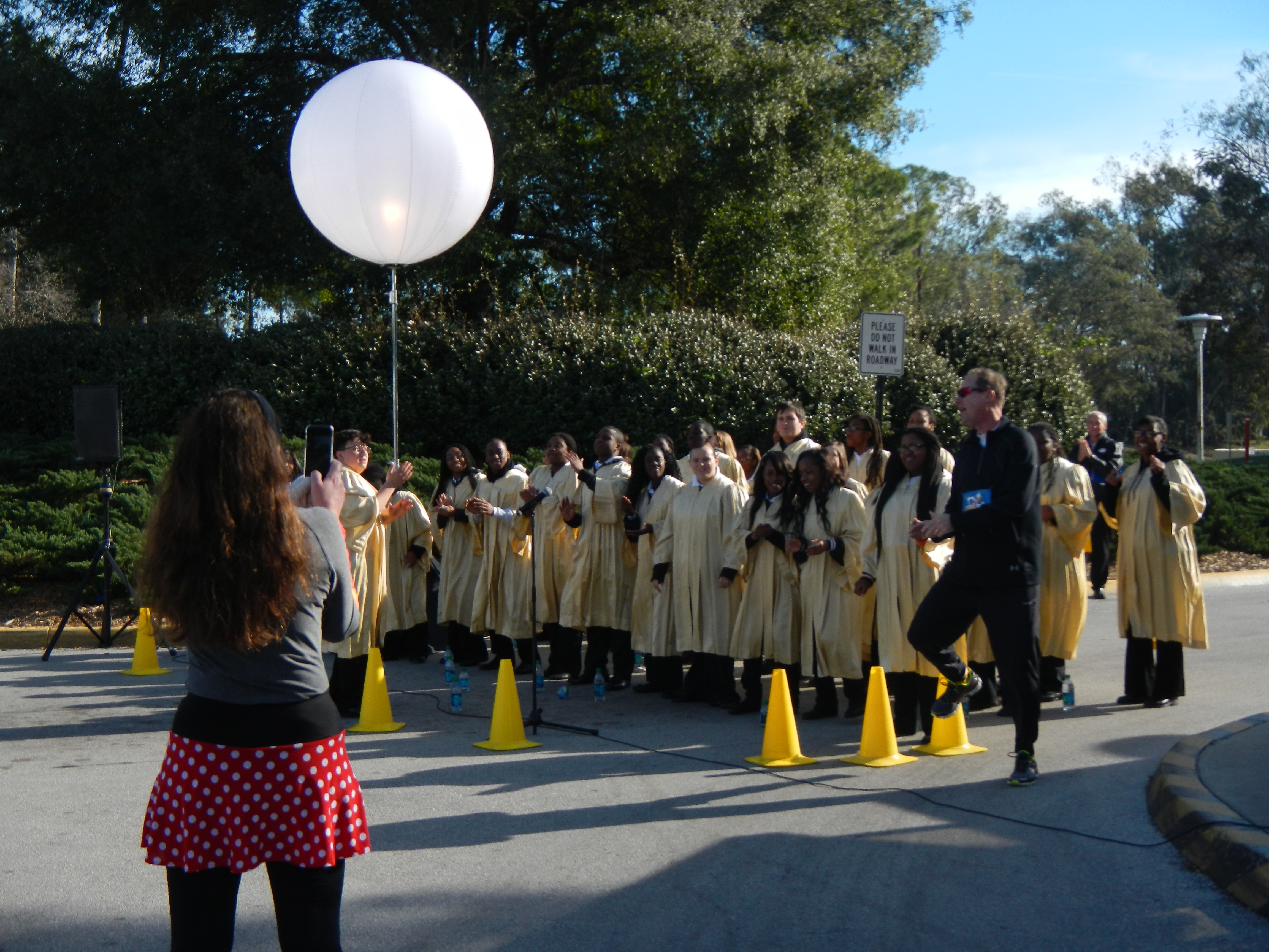 I remember this choir from five years ago. They are near the finish line area and sing so well . They were there the entire time runners were on the course.