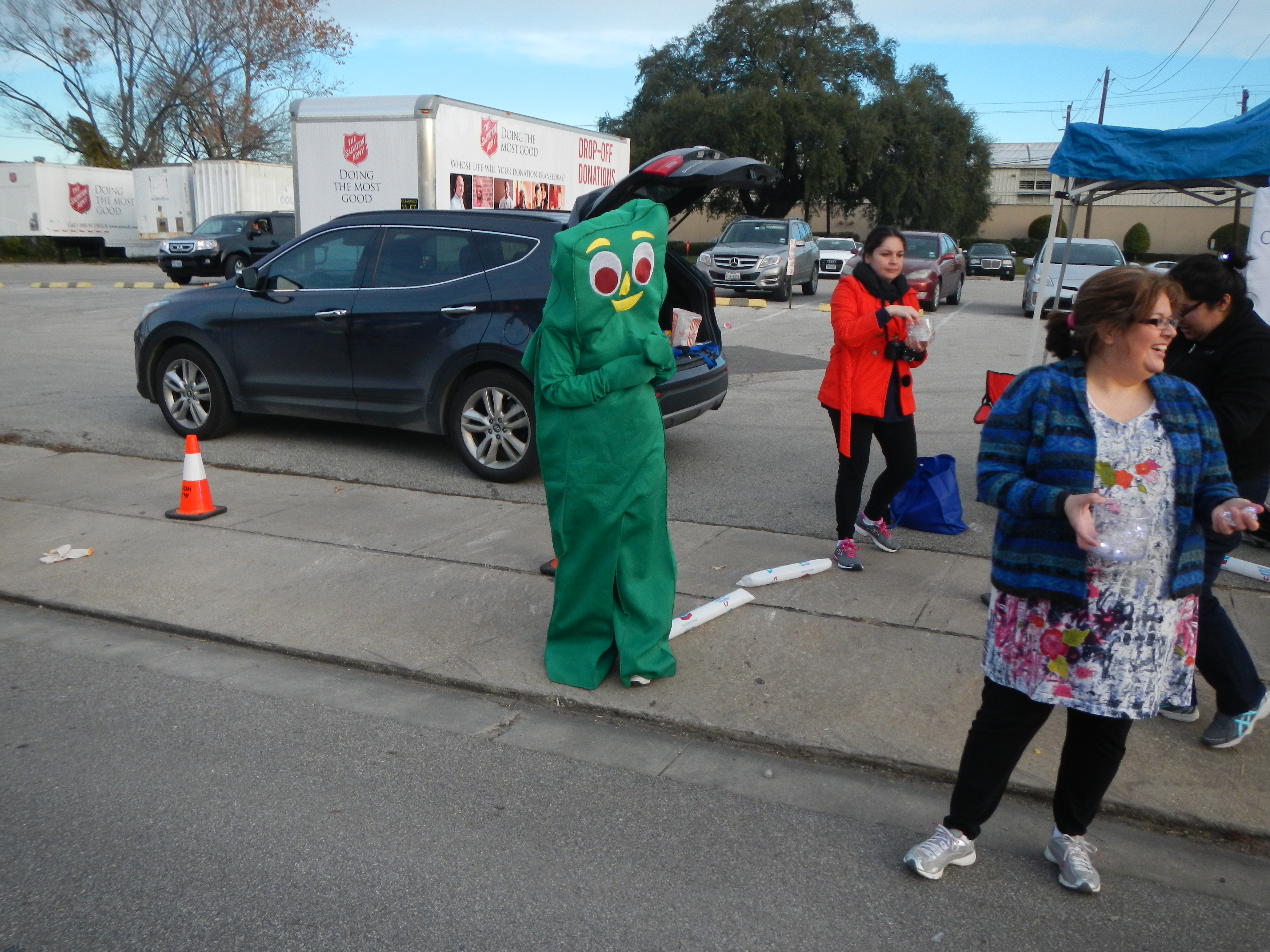 Gumby was there early to cheer on the runners.