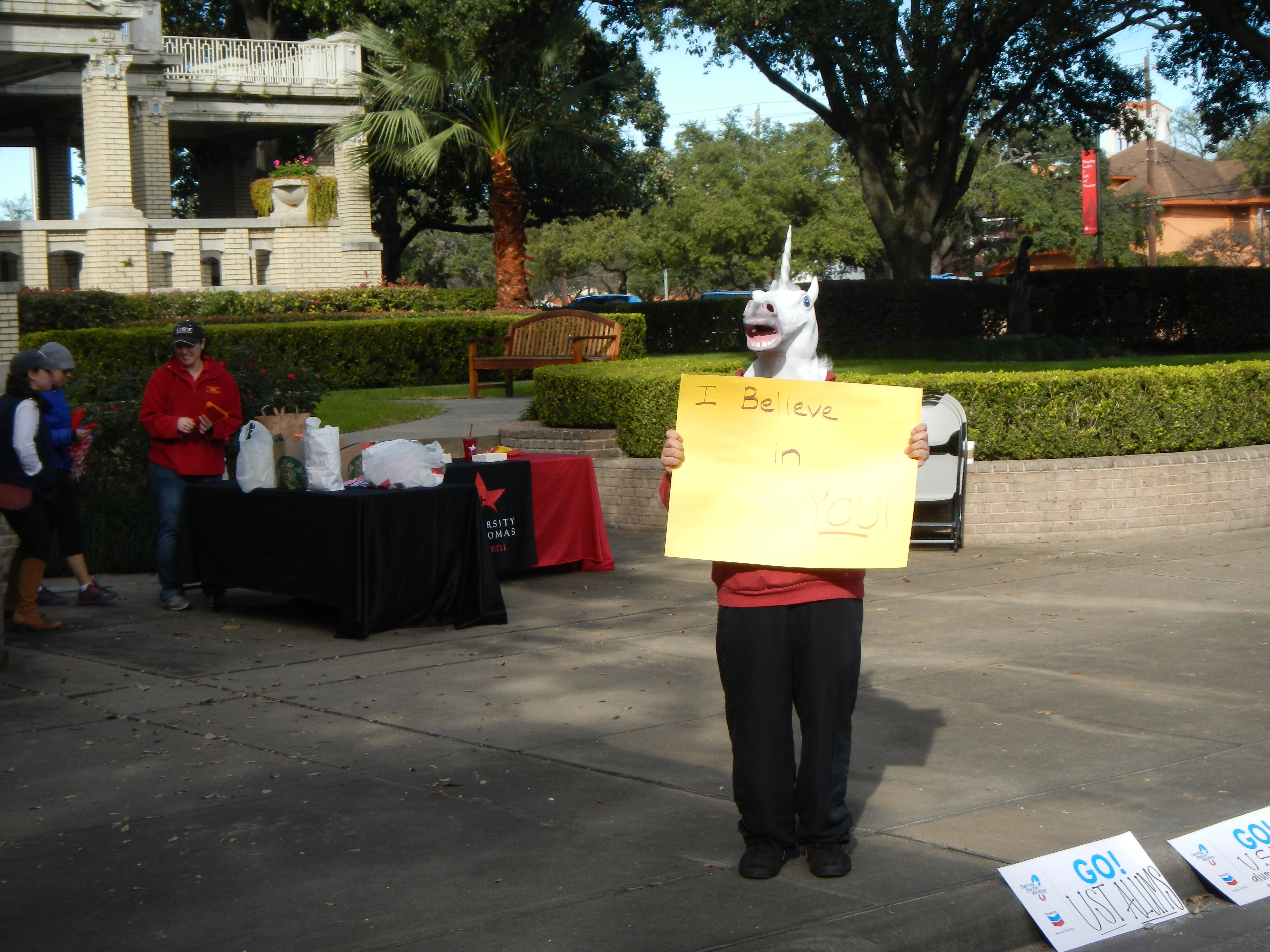 The Unicorn had a sign that said “I believe in you.”